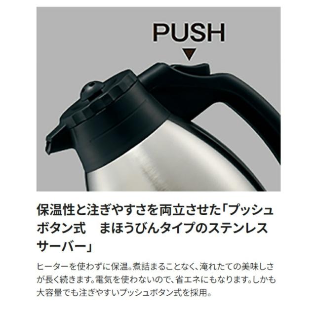 プッシュボタン式まほうびんタイプのステンレスサーバー。