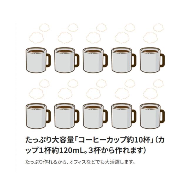 「コーヒーカップ約10杯」カップ1杯約120mL。3杯から作れます