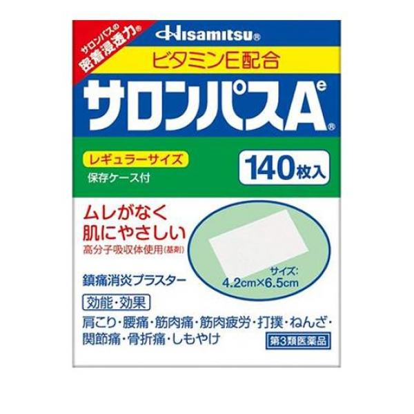 【第3類医薬品】サロンパスAe 140枚 レギュラーサイズ 湿布薬 貼り薬 肩こり 腰痛 筋肉痛 鎮痛消炎剤 プラスター 久光製薬