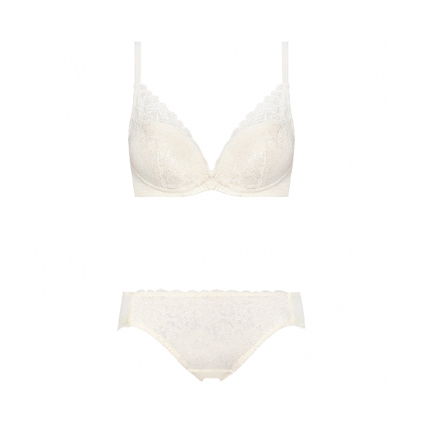 胸元に咲くデイリリー(日本名:ワスレグサ)の花が印象的な繊細でフェミニンなレースシリーズです。