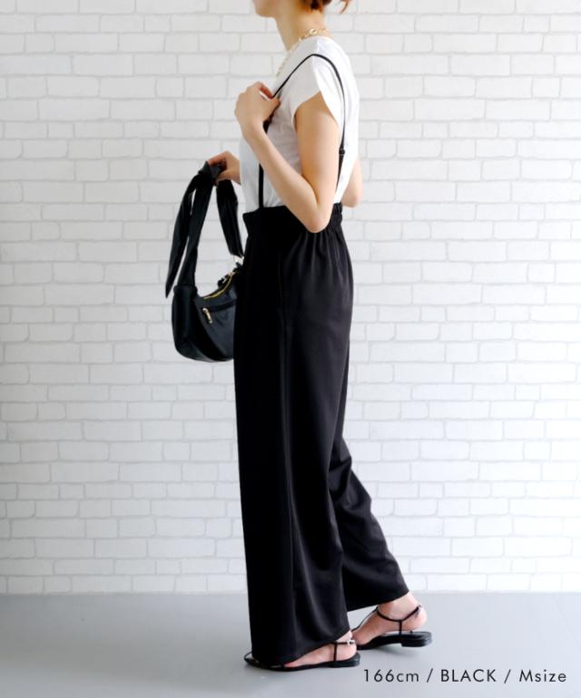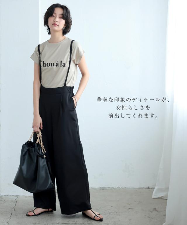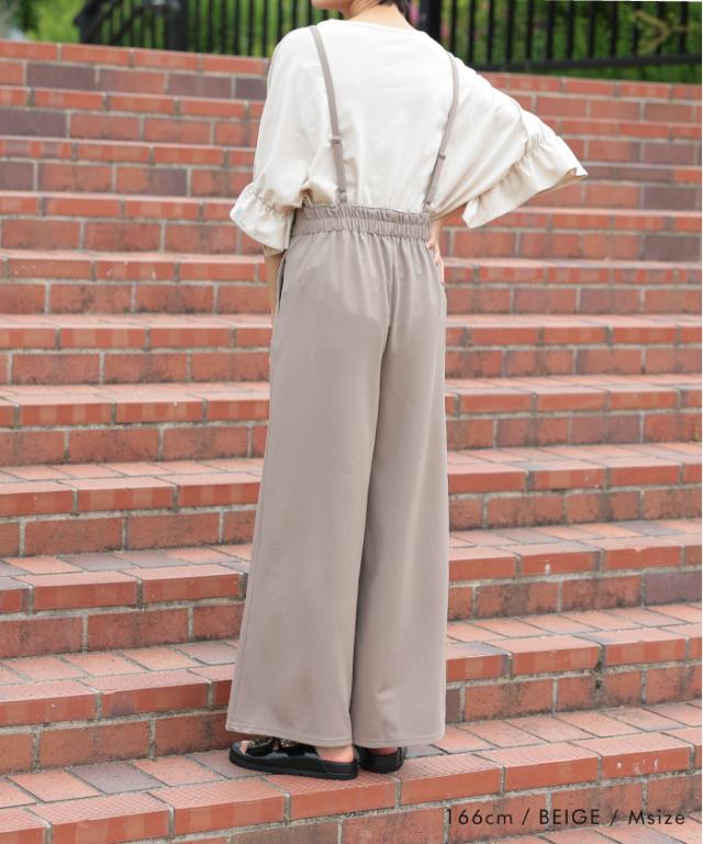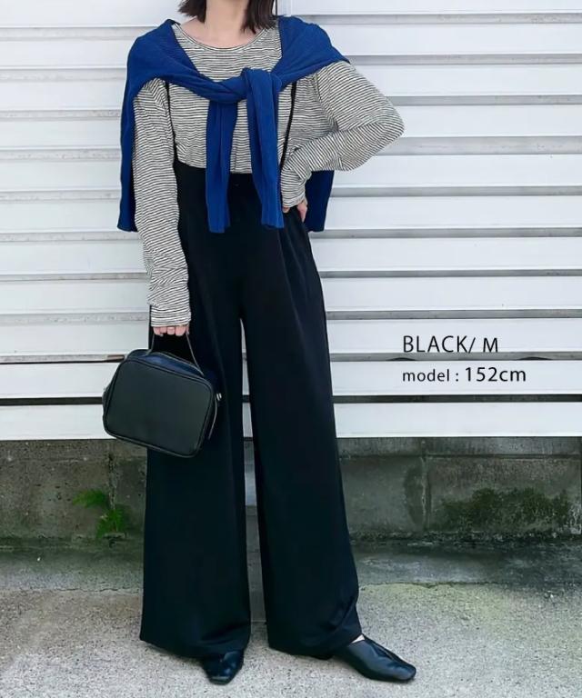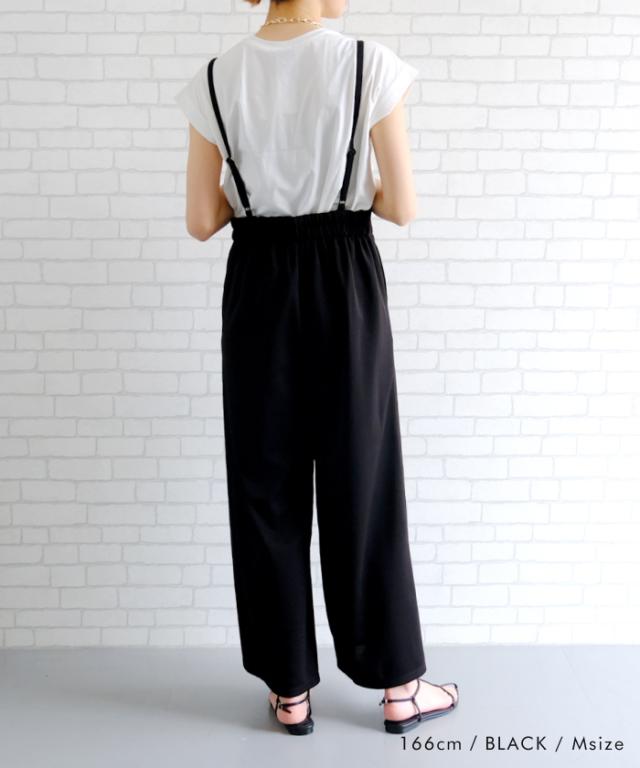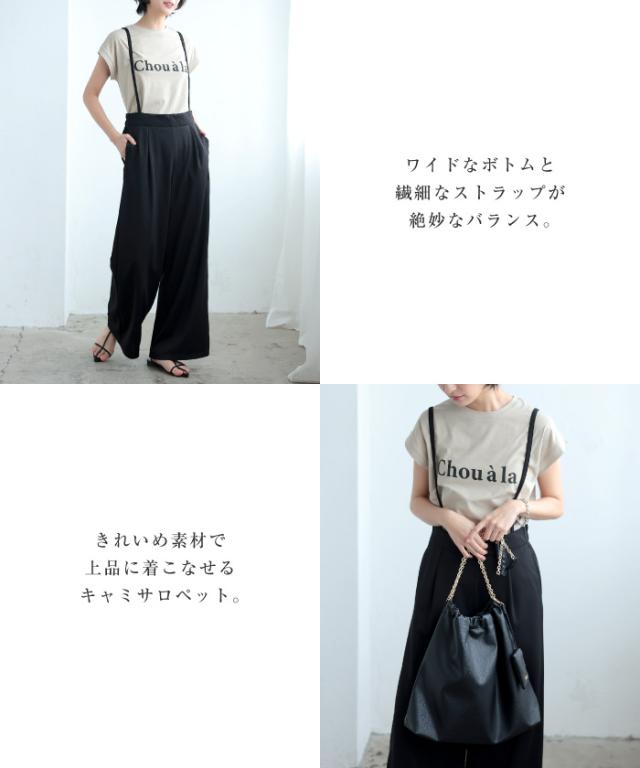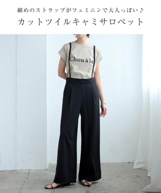 ワイドシルエットのカットツイルキャミサロペット