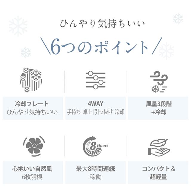 ■4WAY(手持ち・卓上・引っ掛け・冷却)仕様でどんなシーンでも大活躍します。