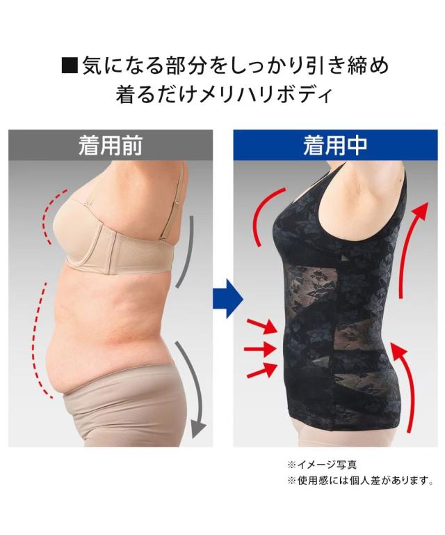 ドレスアップ姿勢フィットインナー着るだけでメリハリボディをサポート!背中・骨盤・下腹・お尻をスッキリ魅せる!引き締めて美しい体!独自のクロスシェイプ構造で骨盤まわりを心地よく引き締め、全体的に締めるのではなく、クロスするように配置されたベルトが上下左右に引っ張りながら引き締めます。また弱圧・中圧・強圧と着圧をつけ、腰まわりや下腹、姿勢、背中、ワキ肉をサポート。着るだけで気になる部分を着圧の変化でしっかり引き締め!メリハリボディをサポートします!取り外しできるブラパッド内蔵。上品なレース調の生地はストレッチ性・通気性があり、ムレにくく、アウターにも響きにくいので快適な着心地。カラー/ブラック、ベージュ洗濯について/洗濯機(ネット使用)補正下着 ぽっこりお腹 ボディスーツ ブラトップ ブラタンクトップ カップ付きインナー 矯正下着 肌着 ノンワイヤー レディース メリハリ 引き締め お腹 背筋 背中 お尻 臀部 腰まわり 脇肉 わき肉 ウエストシェイプ ドレスアップ姿勢フィットインナー 124