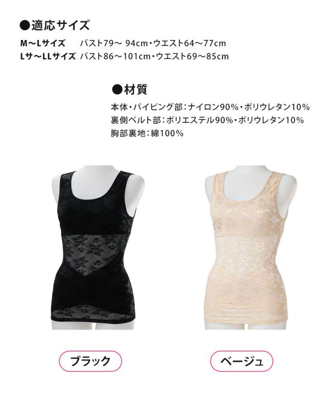適応サイズ/M〜L:バスト79〜 94cm・ウエスト64〜77cm、L〜LL:バスト86〜101cm・ウエスト69〜85cm