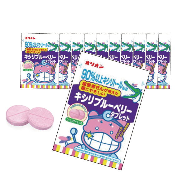 キシリトール90%以上配合で、甘いけれどさわやかなブルーベリー味が口の中に広がります。