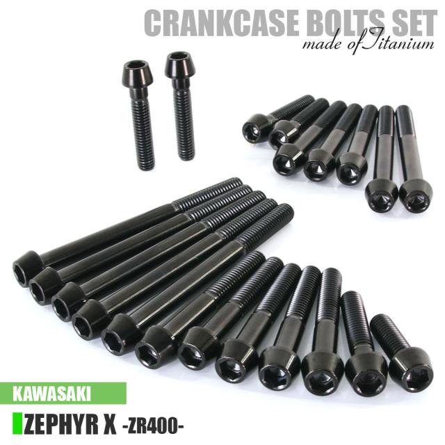 チタンボルト カワサキ ゼファーX ゼファー400X専用 ZR400 クランクケース エンジンカバー ボルト セット 21本 ブラック 軽量化 カスタム ネジ レストア