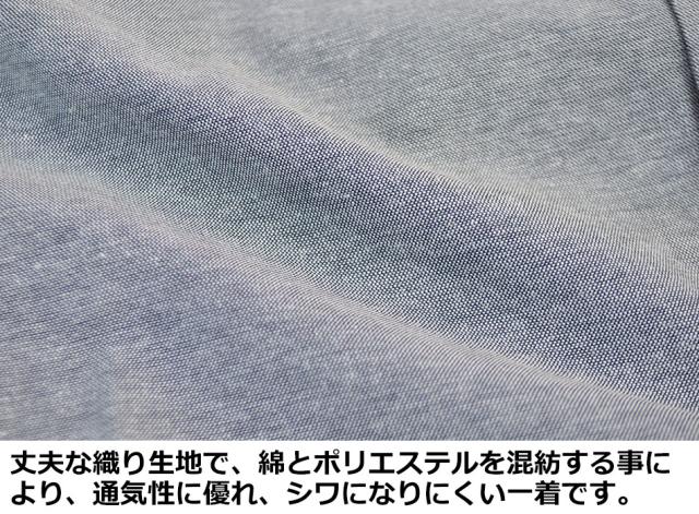 ■綿とポリエステルを混紡する事で通気性、速乾性に優れ、シワになりにくく、耐久性のある生地感です。