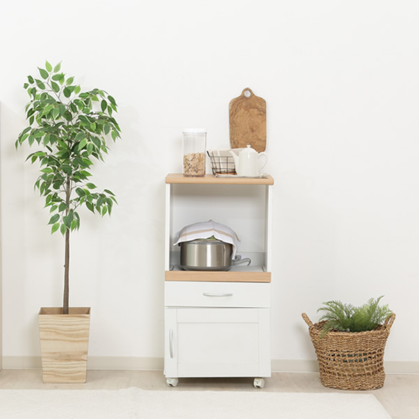 シンプルで置きやすいキッチンカウンターです。 便利なコンセント付きです。 移動に便利なキャスター付きです。 ホワイト色が清潔感のあるデザインです。 シンプルなデザインで他の家具に合わせやすくなっています。 ■カラー:ホワイト×ナチュラル ■サイズ:幅45×奥行41×高さ89cm ■本体重量:16kg ■耐荷重 全体:20kg 天板:10kg トレー:5kg ■素材・材質 表面材(天板/前板):合成樹脂化粧繊維板(塩化ビニル) 表面材(本体):プリント紙化粧繊維板 ■キャスター付き/スライド式棚付き/コンセント付き/天板は丈夫なPVC貼り ■お客様組立品(必要な工具:プラスドライバー・エプロン・軍手) ※お客様組立て品につきましては、組み立て後に不良の連絡をされても対応ができません。組み立て前にパーツに不良・傷等がないか、必ずご確認下さいます様よろしくお願い申し上げます。 ※記載は商品仕様の一部です。仕様説明不足等の理由での返品はできません。特に適合等は必ずご確認ください。