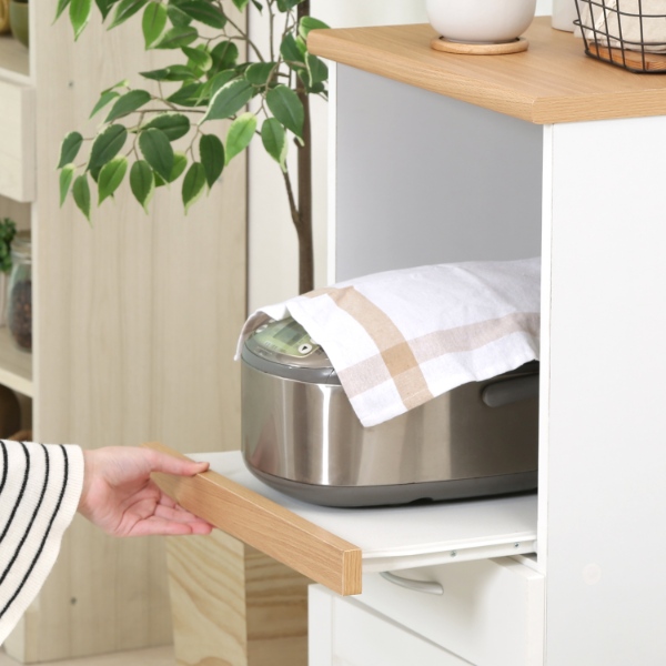 炊飯器、ポットを置くのに便利なスライドテーブル。