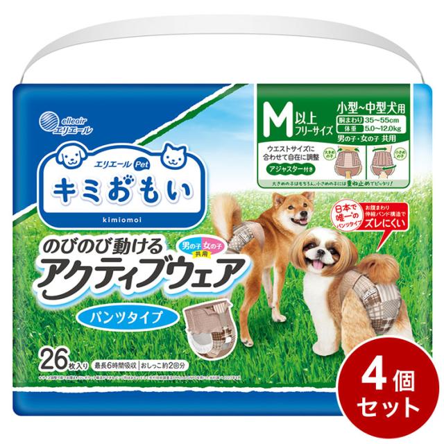 【4個セット】 エリエールペット キミおもい アクティブウェア M-L 26枚 おむつ オムツ ペットおむつ 犬用 犬用おむつ トイレ フリーサイズ 男女共用 兼用【送料無料】