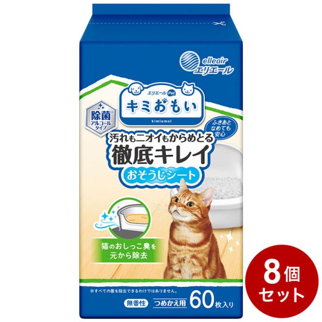 【8個セット】 エリエールペット キミおもい おそうじシート ボトルつめかえ 60枚 詰め替え用 つめかえ用 ペット用 お掃除 シート 猫用 猫トイレ用 除菌【送料無料】