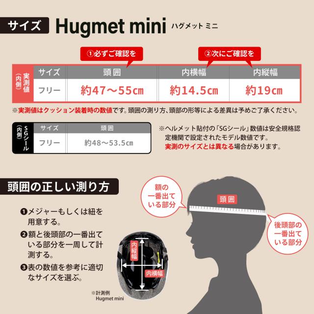 自転車 ヘルメット 子供 幼児 SGマーク SG 安全 EPS発泡スチロール PCポリカーボネート キッズ 自転車ヘルメット HUGMINI ハグミニ キッズヘルメット 幼児 こども 頭囲実測:47〜55(SG規格サイズ:48〜53.5)cm