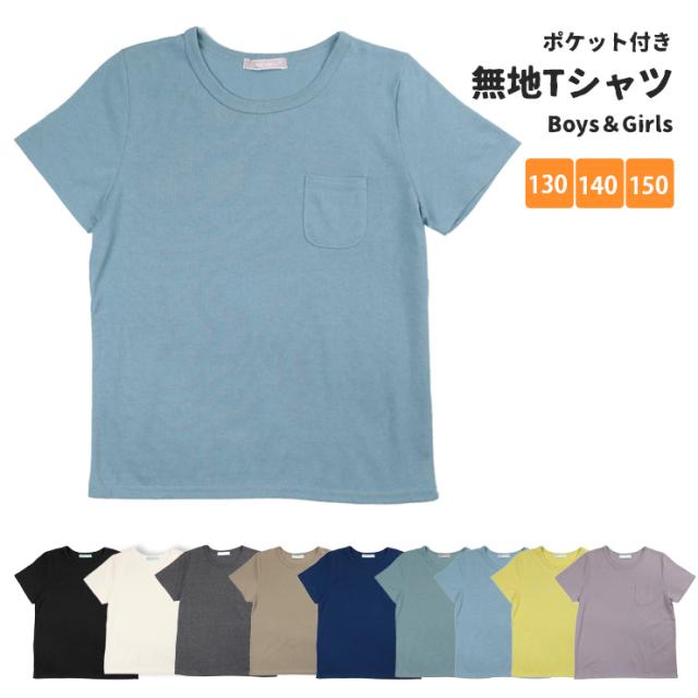 【メール便送料無料】ヘビーウェイトポケット付き半袖Tシャツ キッズ・ジュニア 130 140 150 20350 シンプル 無地 丸首 No.9831