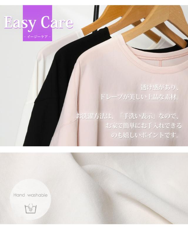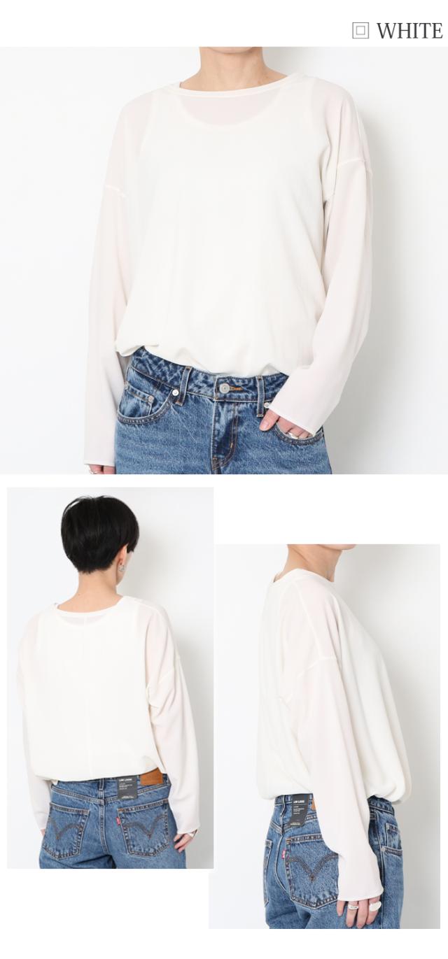 dolly-sean ドリーシーン ストレッチジョーゼット プルオーバーシャツ レディース キレイめ カットソー シャツ ブラウス レイヤード 透け感 シースルー オフィス 体型カバー 長袖 黒 白 bl インナー 上質 シンプル とろみ 日本製 おしゃれ ブランド 春夏 M-8408