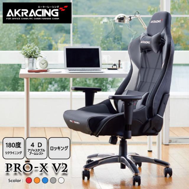 AKRacing ゲーミングチェア オフィスチェア ゲーム チェア パソコンチェア デスクチェア リクライニング アームレスト レザー 椅子 ゲーム用 ロッキング機能 1人掛け キャスター付き おしゃれ Pro-X V2 5色対応