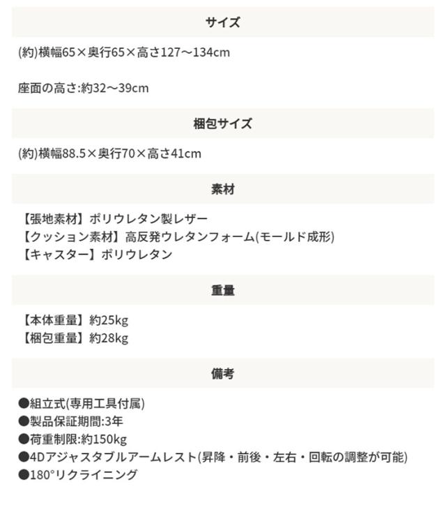 約W65 x D65 x H127〜134 x SH32〜39cm