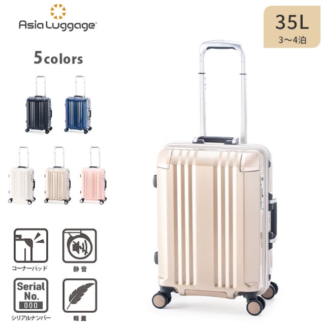 アジアラゲージ スーツケース キャリーボックス キャリーケース デカかるEdge ALI-070R-18 35L 3〜4泊 フレーム 機内持ち込み コーナーパッド 軽量 ストッパー