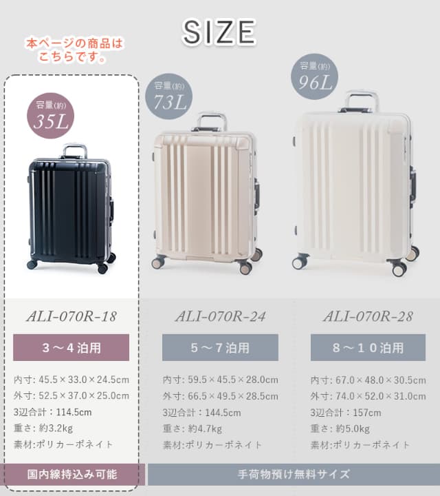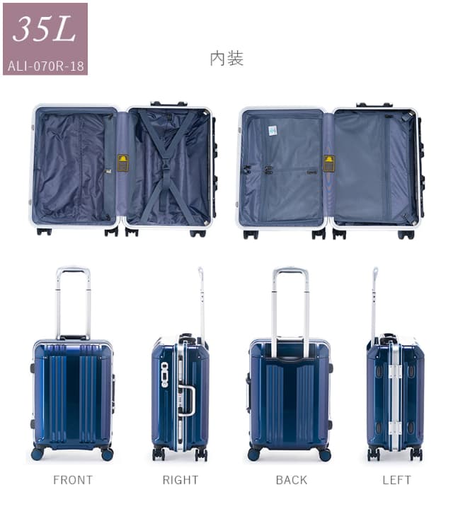 アジアラゲージ スーツケース キャリーボックス キャリーケース デカかるEdge ALI-070R-18 35L 3〜4泊 フレーム 機内持ち込み 軽量