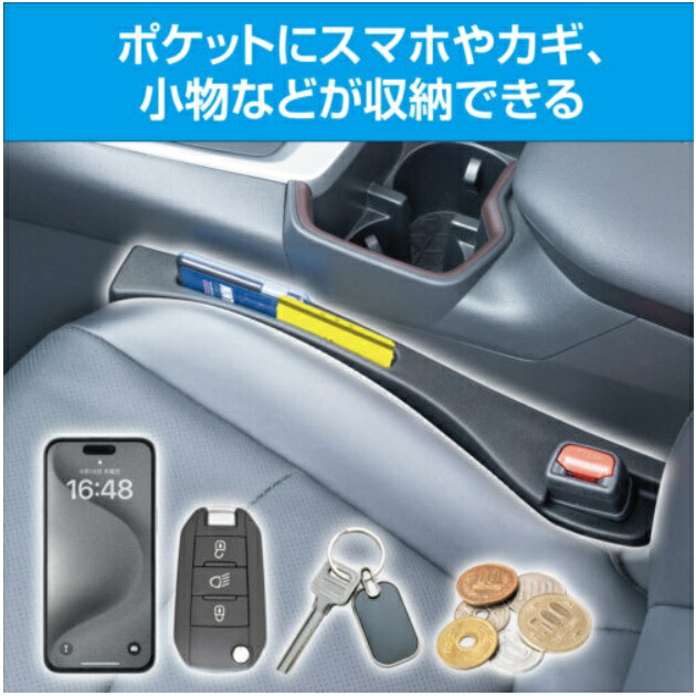 セイワ WA133 ウレタンシート隙間埋め+ポケット 運転席 助手席 2本セット WA-133【お取り寄せ商品】SEIWA カー用品 ポケット 収納 小物入れ 小物収納 隙間収納