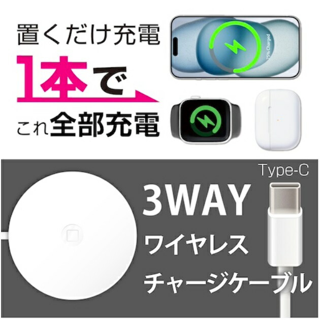 様々な無線充電対応機器を充電できるUSB Type-Cケーブル
