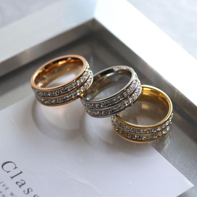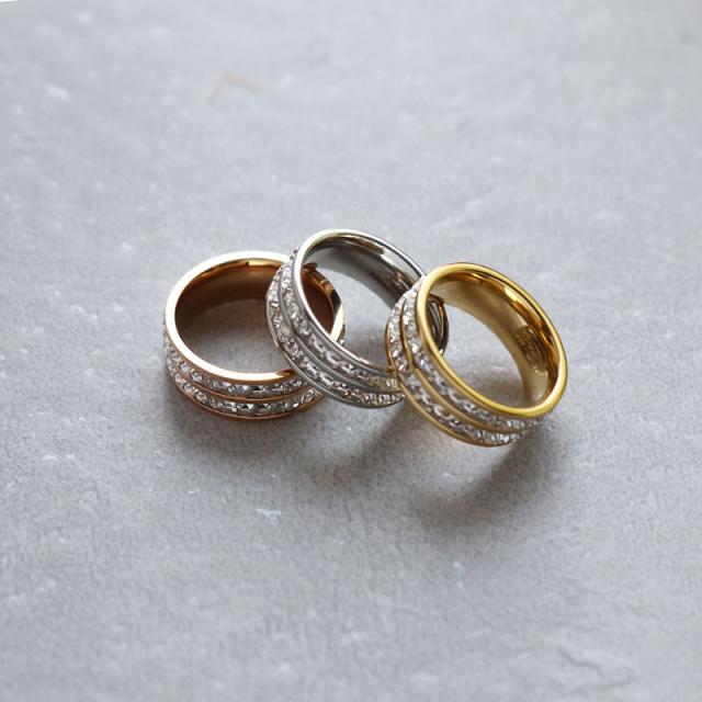 指輪 リング ステンレス製 レディース サージカルステンレス キュービックジルコニア つけっぱなし フルエタニティリング 二連 幅広 9号 11号 14号 16号 金属アレルギー ビジュー オシャレ オケージョン 女性 ブランド ギフト プレゼント