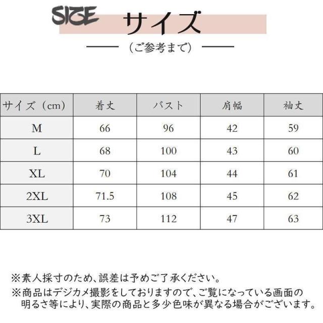 ▼サイズ:M/L/XL/2XL/3XL(単位:CM)
