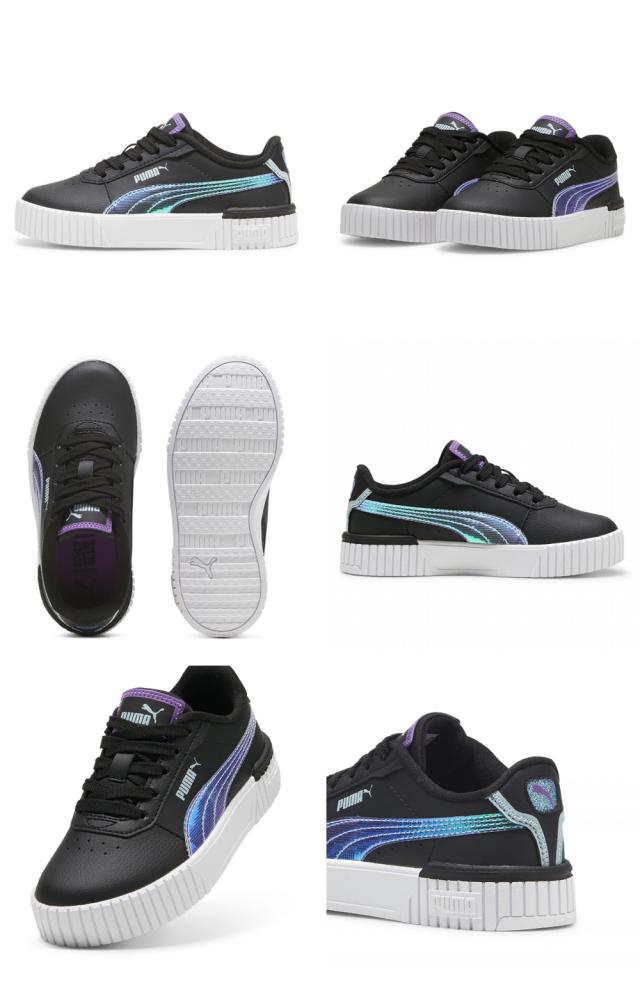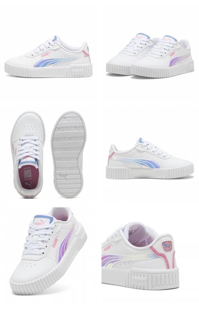 80年代のスタイルにインスピレーションを受けたキャリーナ 2.0が登場。SOFTFOAM+を使用したインソールは、一日中快適な履き心地を提供します。パンチング加工が施されたプーマフォームストリップ、ぶ厚いソール、かかとのプーマロゴがデザインの特徴。カリフォルニアのビーチのストリートシーンを彷彿させるルックスで、半透明のディテール、ネオプレン、光沢合成繊維と組み合わされています。