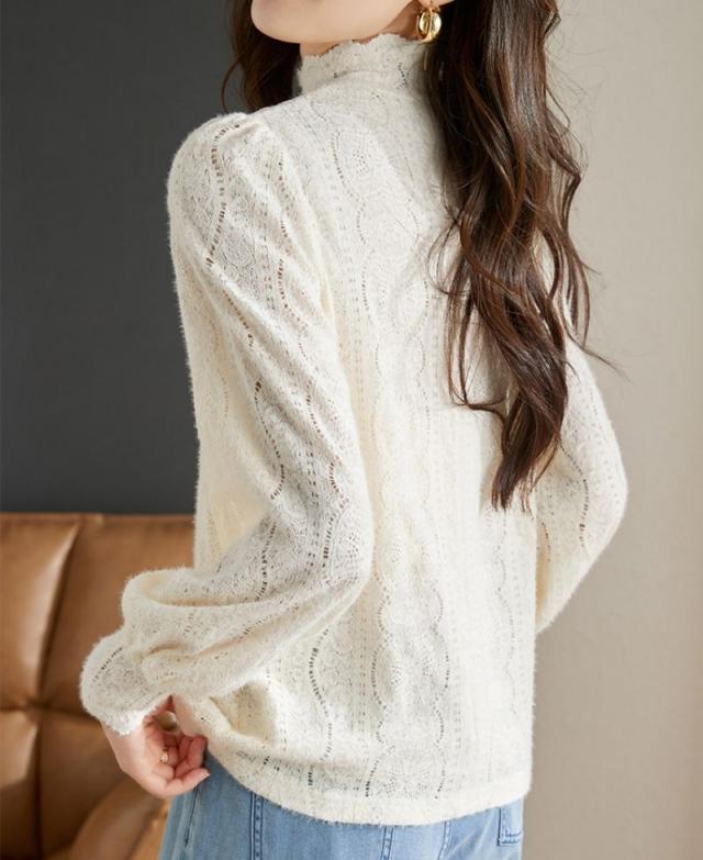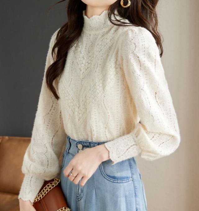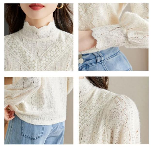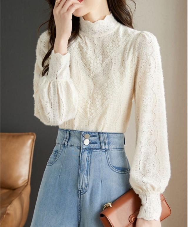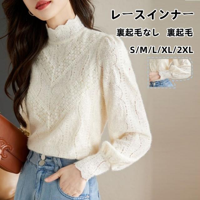 ブラウス レディース トップス シャツ チュニック レース 裏起毛 レースインナー 透けトップス 無地 体型カバー 春秋