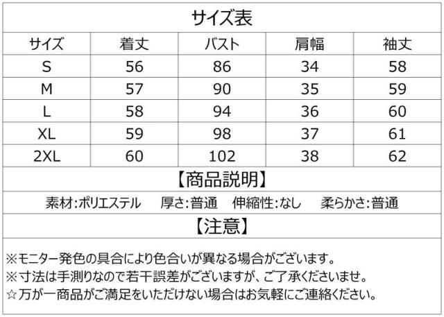 ▼サイズ:S/M/L/XL/2XL(単位:CM)