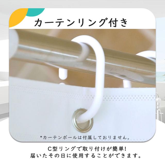 シャワーカーテン ユニットバス リング付き カーテンリング C型リング お風呂 間仕切り 浴室 風呂 トイレ 洗面所 着替え 玄関 押し入れ クローゼット 収納 子供部屋 目かくし 目隠し 防水 防カビ 大掃除 年末年始 片付け 整理整頓 ビニールカーテン シンプル 半透明 ホワイト 冷気除け 断熱 節電