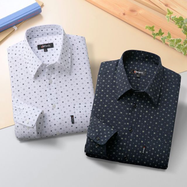 Pierucci(ピエルッチ)綿100%小紋柄長袖シャツ2色組 (メンズ 男性用 紳士用 長袖 2枚組 コットン ホワイト系 敬老の日)