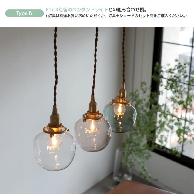 【セット】3点留めペンダントライト(100cm)+ガラスシェード ポム