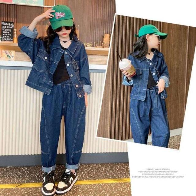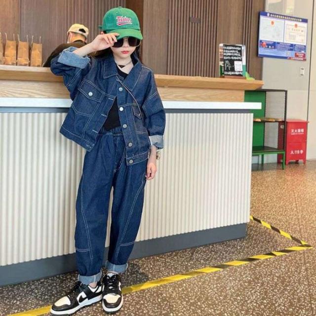 女の子セット 子供服 デニムスーツ 上下セット newlook 新品 大人気 ストリート 2024春新作 部屋着 お出掛け カジュアル 韓国風 子供用