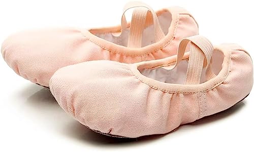 バレエシューズ バレエダンスシューズ ズック製バレエ靴 ダンス練習シューズ キャンバス製 布製 大人&子供用 初心者 練習用 (薄いピンク)