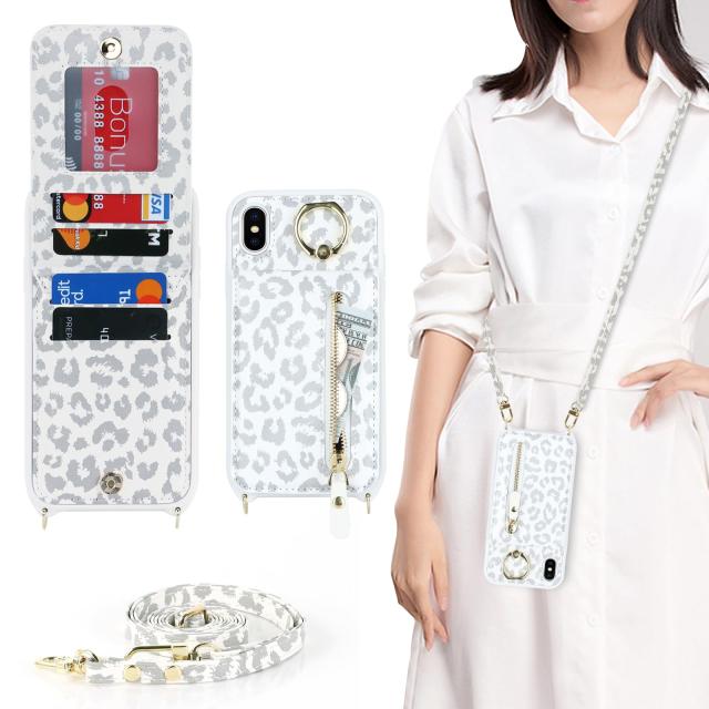iPhone X / iPhone XS ケース ショルダー リング付きケース ストラップケース 背面フリップ 手帳型 上下開 iphoneX iphoneXS ショルダーケース リング ポシェット 通用 iphone10 iphone10s ケース アイフォンX ケース スマホケース アイフォン X アイフォンXS ケース アイフォン XS case カバー アイホンX アイホンXS アイホン 10 アイホン 10S ケース アイフォン10 アイホン10 アイフォン10s アイホン10s iPhone 10 10s ケース 適用 iCoverCase リング付き カードケース カード収納 スナップ式 横置き スタント 肩がけ 首掛け 斜め掛け ファスナー ストラップ付き ショルダーケース カード入れ カバー スマホケース 携帯カバー 豹柄 ヒョウ柄 ホワイト