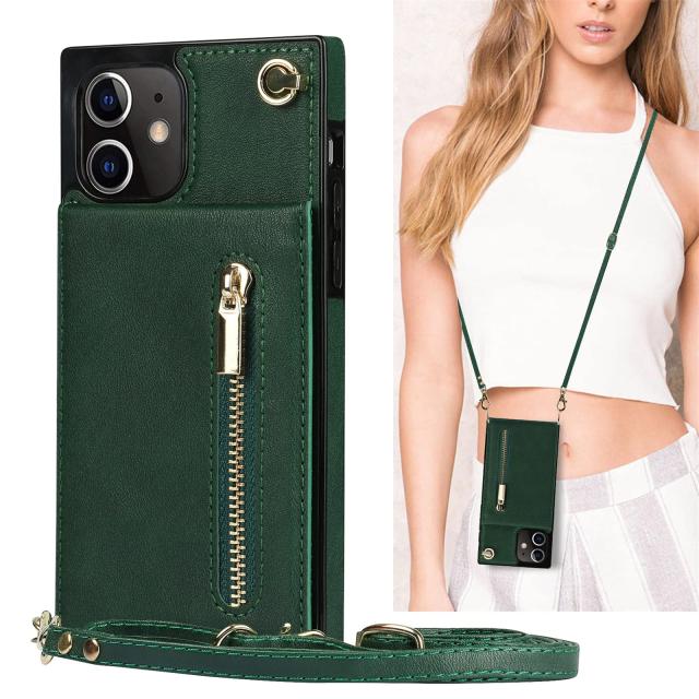 iPhone 11 ケース 手帳型 ショルダー クロスボディ iPhone11 ケース iphone11スマホケース iphone11手帳型 アイフォン 11 ケース 手帳ケース アイホン 11 ケース CASE アイフォン11 ケースカバー 適用 iCoverCase 肩がけ 首掛け 斜め掛け カードケース チェーン ファスナー型 ストラップ付き ショルダーケース クロスボディケース カード入れ スマホケース 携帯カバー グリーン