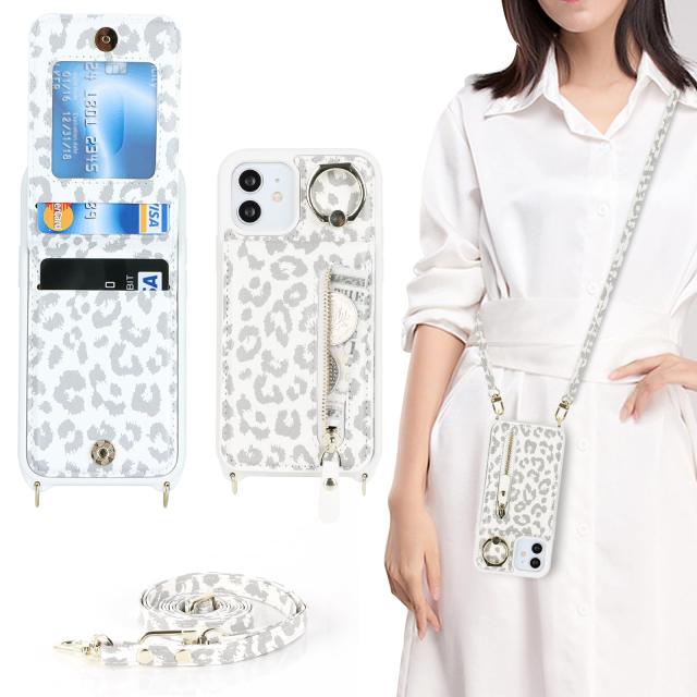 iPhone 12 mini ケース ショルダー リング付きケース ストラップケース 背面フリップ 手帳型 上下開 ショルダー リング ストラップ ポシェット iPhone12mini いphone12mini iPhone12 mini アイホン12mini アイフォン12 mini ケース 12みに アイホン 12miniケース iPhone 12 mini ケース アイフォン12mini ケース アイフォン 12 ミニ カバー アップル アイホン12ミニ 携帯ケース 12ミニ ポシェットケース 適用 case iCoverCase リング カードケース カード収納 スナップ式 横置き スタント 肩がけ 首掛け 斜め掛け ファスナー ストラップ付き ショルダーケース カード入れ カバー スマホケース 携帯カバー 豹柄 ヒョウ柄 ホワイト