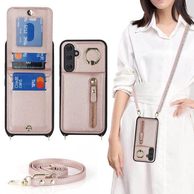 A54 5g galaxy ケース ショルダー 手帳型 上下開 ストラップケース リング付きケース galaxyA54 リング付き リング Galaxy A54 5G ケース SC-53D ケース A545G docomo / SCG21 ケース au SIMフリー 全対応 A54ケース サムスン ギャラクシー A54 カバー SC53D ケース SCG21 カバー スマホケース A54ケース 適用 case iCoverCase ストラップ カードケース カード収納 スナップ式 横置き スタント 肩がけ 首掛け 斜め掛け ファスナー ストラップ付き ショルダーケース カード入れ カバー スマホケース 携帯カバー ピンク