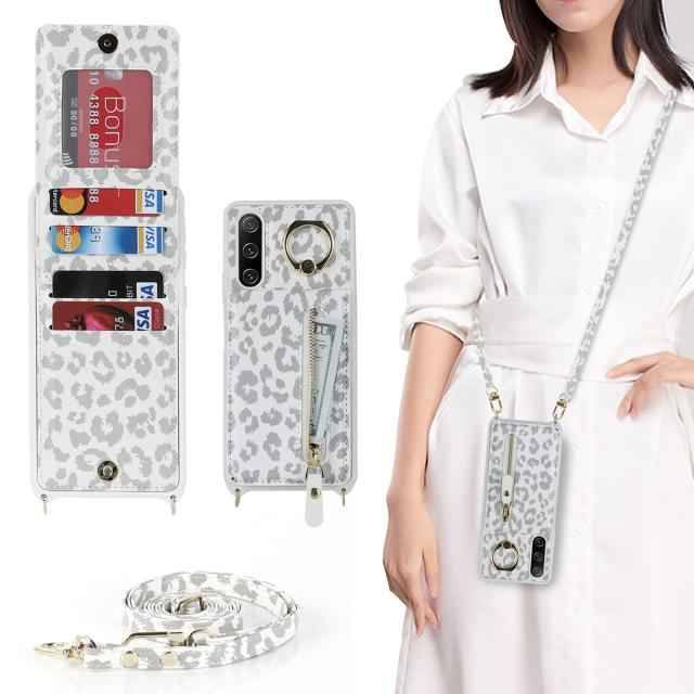 Xperia 10 IV ケース ショルダー リング付きケース ストラップケース ショルダーケース 背面フリップ カードケース 上下開 手帳型 エクスペリア xperia10 4 xperia10 マーク4 au SOG07 docomo SO-52C SoftBank 適用 CASE iCoverCase リング付き カードケース 豹柄 ヒョウ柄 ホワイト