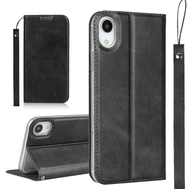 iphone XR スマホ ケース iphoneXR 携帯ケース アイフォンXR case iCoverCase 内蔵マグネット 磁気閉鎖 ベルトなし スマホケース カード入れ付き スタンド機能 軽量 スプラットホール付き スプラット同梱 落ち着いた ブラック