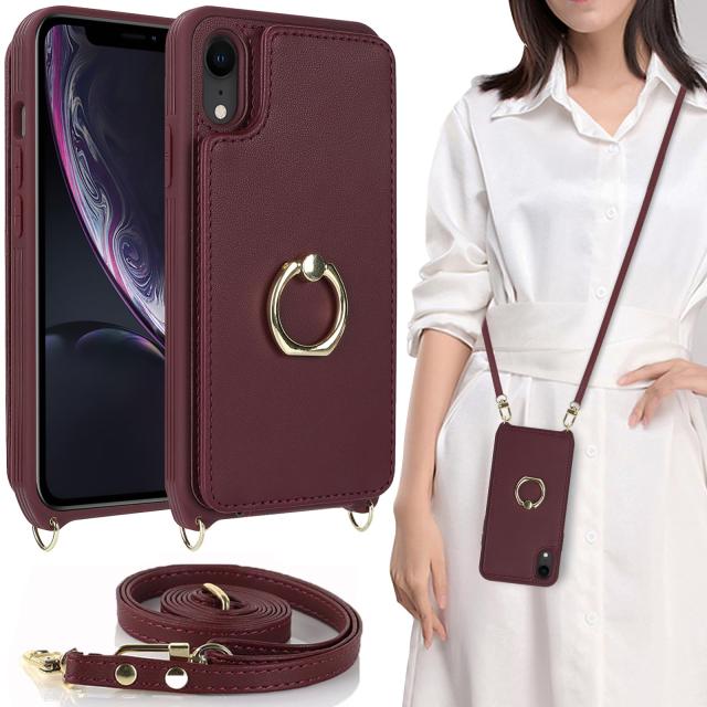 iPhone XR ケース 手帳型 ショルダー リング付きケース ストラップケース 背面 手帳型 上下開き ストラップ付き カバー iphone10R ショルダーケース リング ポシェット iPhoneXRケース アイホン10rケース アイフォン10rケース iPhone10rケース アイホン10r アイフォン10r アイフォン アイホン 10r iPhoneXR ケース iphonexrスマホケース アイフォン xr ケース 手帳ケース アイホン XR ケース CASE アイフォンXR ケースカバー 適用 iCoverCase リング付き カードケース カード収納 スタンド 肩がけ 首掛け 斜め掛け カード入れ 携帯カバー ワインレッド