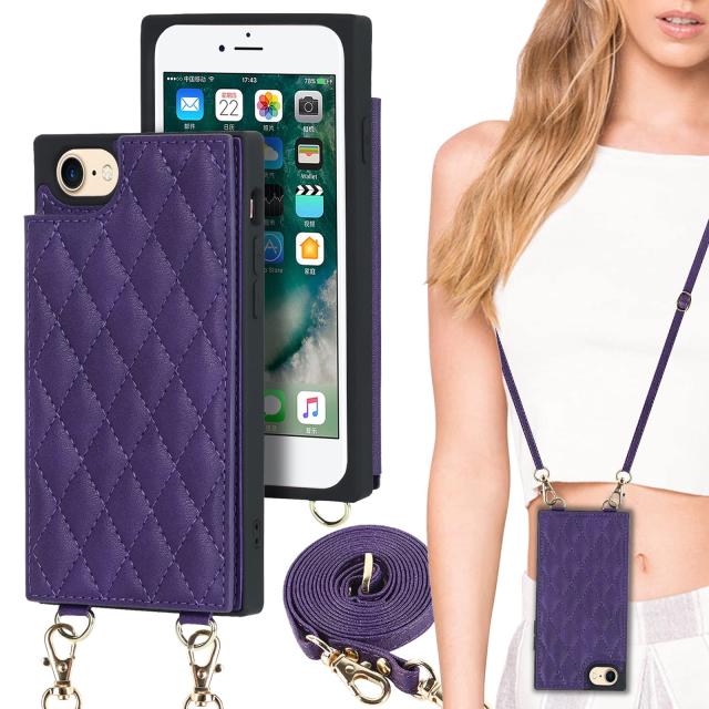 iPhone SE 第二世代 第三世代 適用 iPhone7 iPhone8 iPhoneSE(2020) iPhone SE 第2世代 第3世代 通用 iPhone SE2 SE3 SE 2022 ケース 手帳型 ショルダー アイホン アイホン7 アイホン8 アイホンSE iPhoneSE2 iPhoneSE3 iPhone SE2 アイフォンSE 2020 アイフォンSE2 アイフォンSE3 ケース iPhoneSE 2nd 3rd スマホケース アイフォン 7 アイフォン8 ケース 手帳型 iphone8 ケース iphone8 手帳 アイフォン7 ケース iphone7 case カバー 適用 iCoverCase 肩がけ 首掛け 斜め掛け 背面 プリップ カードケース カード収納 check 縫製 チェック模様 菱 チェック柄 ストラップ付き ショルダーケース チェック ハードケース クロスボディケース カード入れ スマホケース 携帯カバー パープル