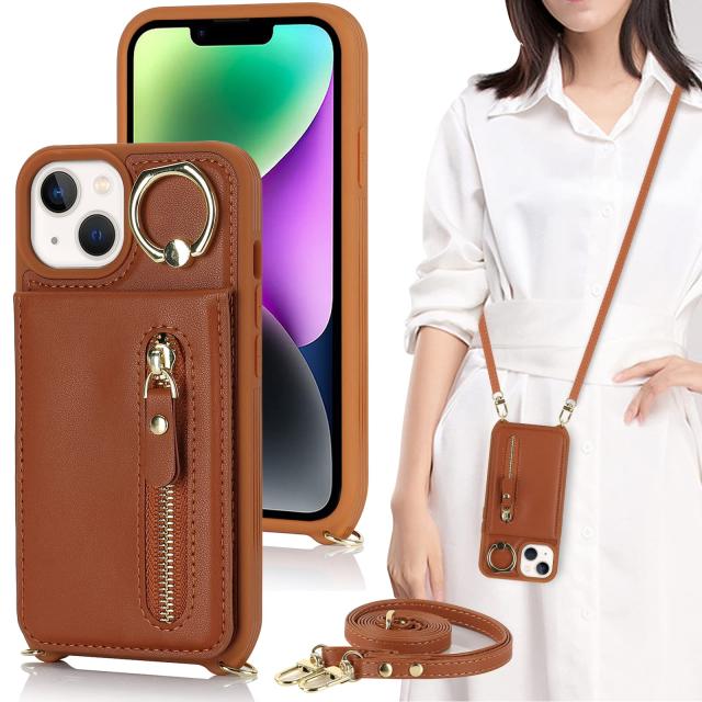 iPhone 14 / 13 通用 ケース ショルダー リング付きケース 手帳型 上下開 アイホン14 アイホン13 リング付き リング iPhone14 iPhone13 ケース アイフォン14 アイフォン13 スマホケース アイフォン 14 13 ケース 手帳ケース アイホン 14 13 ケース CASE カバー 適用 iCoverCase リング カードケース カード収納 スナップ式 横置き スタント 肩がけ 首掛け 斜め掛け ファスナー ストラップ付き ショルダーケース カード入れ カバー スマホケース 携帯カバー ブラウン