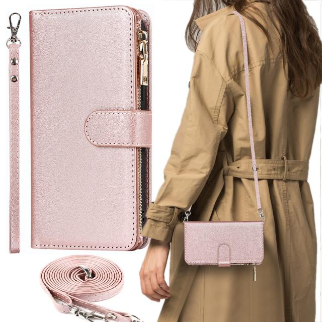 AQUOS Sense7 ケース 手帳型 ショルダー クロスボディ スマホショルダー カードケース Sense 7 ケース センス7 ケース AQUOSsense7 全対応 SH-M24 UQmobile docomo SH-53C au SHG10 SIMフリー 楽天モバイル ケース 手帳型 アクオス Sense7 SH53C SHM24 ケース シャープ カードケース 手帳 カバー 手帳ケース 適用 case iCoverCase ストラップホール付き カード収納 バッグ マグネット 留め具 肩がけ 首掛け 斜め掛け カードケース ファスナー型 ストラップ付き カバー ショルダーケース クロスボディケース カード入れ スマホケース 携帯カバー ピンク