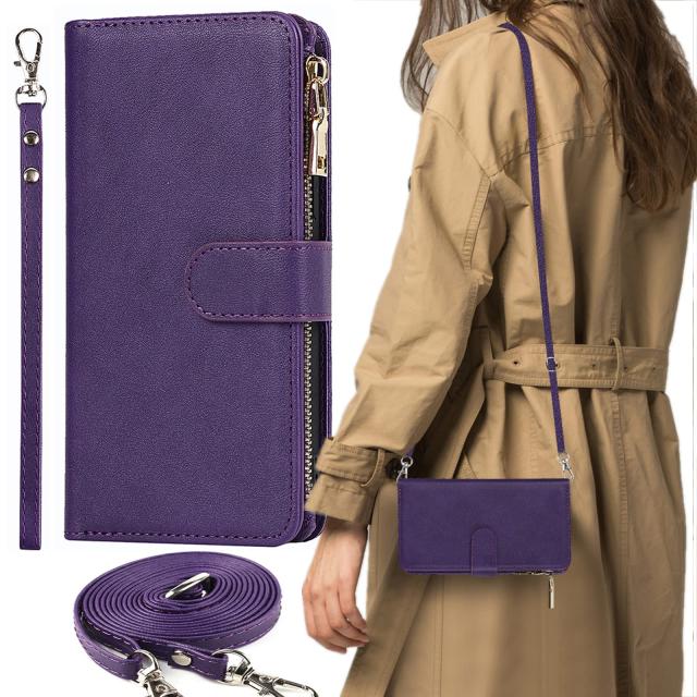 シンプルスマホ6 ケース A201SH / BASIO active ケース SHG09 通用 ケース 手帳型 手帳ケース ショルダー クロスボディ simple sumaho 6 ケース シャープ ソフトバンク SoftBank シンプルスマホ 6 / ベイシオ アクティブ BASIO active au カバー スマホケース 手帳ケース 手帳カバー 手帳型 財布 適用 case iCoverCase ストラップホール付き カード収納 バッグ マグネット 留め具 肩がけ 首掛け 斜め掛け カードケース ファスナー型 ストラップ付き カバー ショルダーケース クロスボディケース カード入れ スマホケース 携帯カバー パープル
