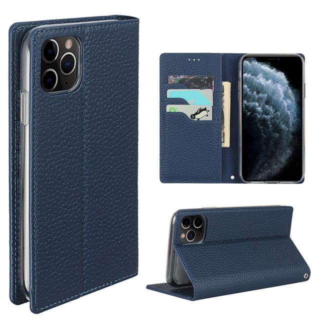 iPhone 11 pro ケース アイフォン11 pro iPhone11pro ケース iPhone11 pro アイフォン 11 pro ケース iPhone 11pro カバー iPhone 11 プロ 携帯ケース スマホケース 手帳型 case iCoverCase 内蔵マグネット スマホケース カード入れ付き スタンド機能 本革 柔らかい 本皮 ライチ模様 ダークブルー ネイビー