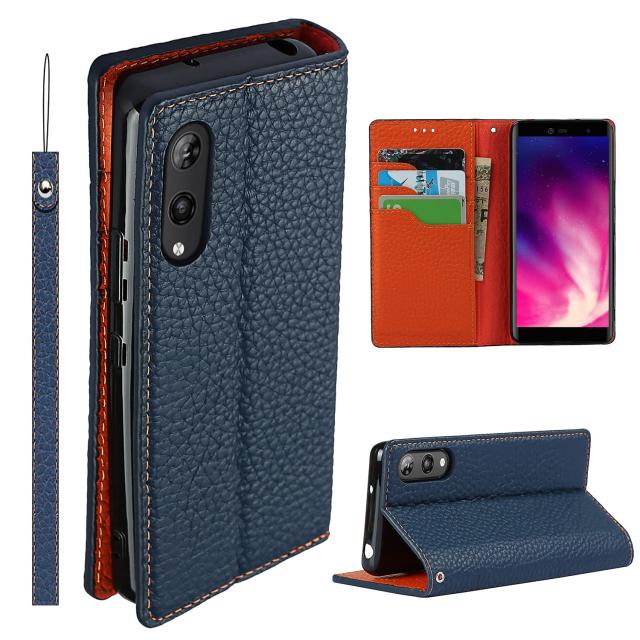 楽天Handに適用する らくてんハンド 対応 Rakuten Hand ケース 手帳型 RakutenHand ケース 楽天Hand 楽天モバイル 楽天 ハンド ケース カバー 楽天 Hand 対応 スマホケース 手帳型 case 適用 iCoverCase 内蔵マグネット ベルトなし スマホケース カード入れ付き スタンド機能 本革 柔らかい 本皮 ライチ模様 スプラット同梱 ネイビー