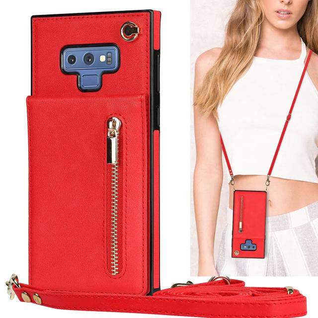 Galaxy Note9 ケース 手帳型 ショルダー クロスボディ SC-01L SCV40 対応 ノート9 スマホケース galaxy note 9 携帯 ケース サムスン ギャラクシー ノート 9 SC01L カバー NOTE 9 手帳型 カバー 財布 適用 case iCoverCase 肩がけ 首掛け 斜め掛け カードケース チェーン ファスナー型 ストラップ付き ショルダーケース クロスボディケース カード入れ スマホケース 携帯カバー レッド