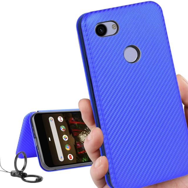 Google pixel 3a ケース pixel3a ケース ピクセル 3a カバー グーグル pixel3a カバー グーグルpixel3a 対応 スマホケース ピクセル3a 手帳型 カバー 財布 ケース case iCoverCase 外:炭素繊維 ハードケース カバー 内:TPUケース 耐衝撃 携帯カバー スマホケース 指紋防止 軽量 ストラップ 同梱 ブルー
