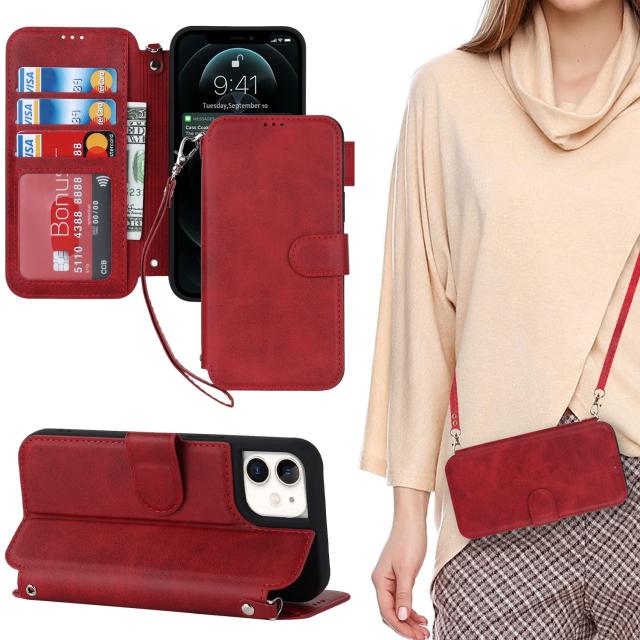 iPhone12 ケース / iPhone12 pro ケース 手帳型 ショルダー 両立 軽量化 ショルダーケース クロスボディ iPhone 12 iPhone12 pro 手帳型 カバー アイホン12 アイホン12pro アイホン アイフォン12 アイフォン 12プロ ケース アイフォン 12pro アイフォン 12 pro アイフォン12pro 12 プロ 適用 case iCoverCase ストラップホール付き カード収納 スタンド ストラップ 二本同梱 マグネット 肩がけ 首掛け 斜め掛け カードケース ストラップ付き カバー ショルダーケース クロスボディケース カード入れ スマホケース 携帯カバー レトロ ワインレッド